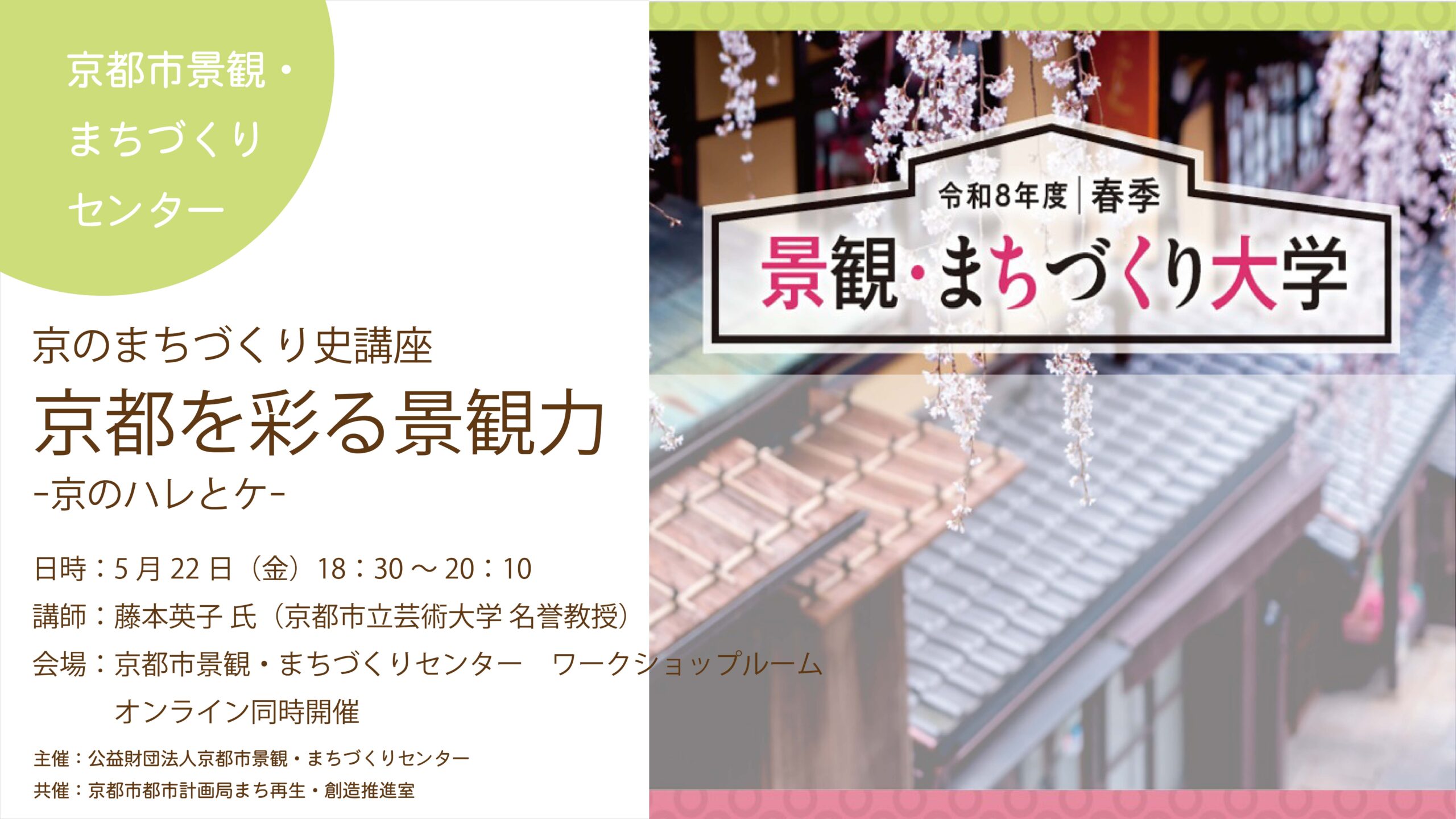 京都市景観・まちづくりセンター 2026 年 5 月 22 日 (金) オンライン 2026 年 5 月 22 日 (金) |