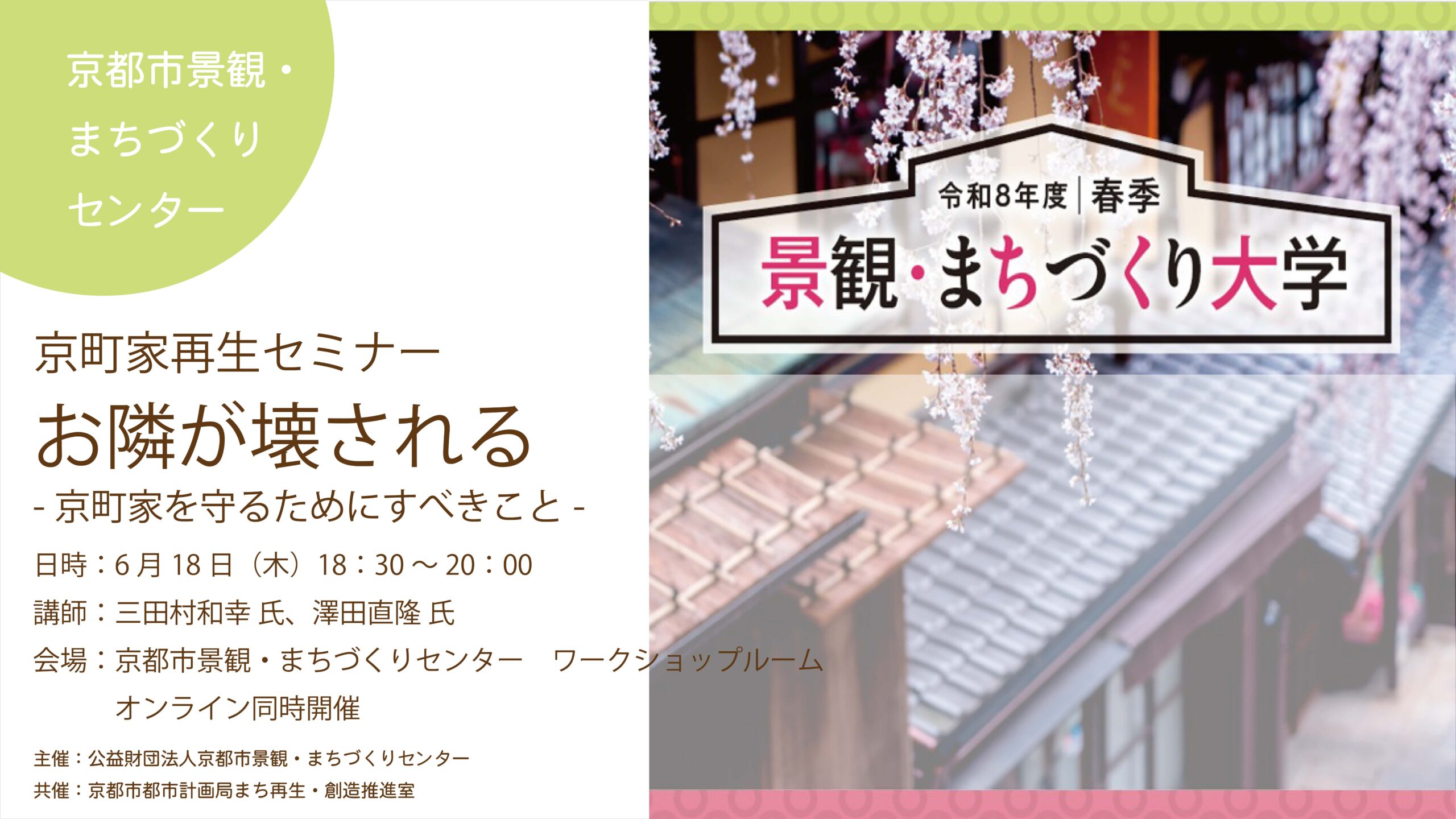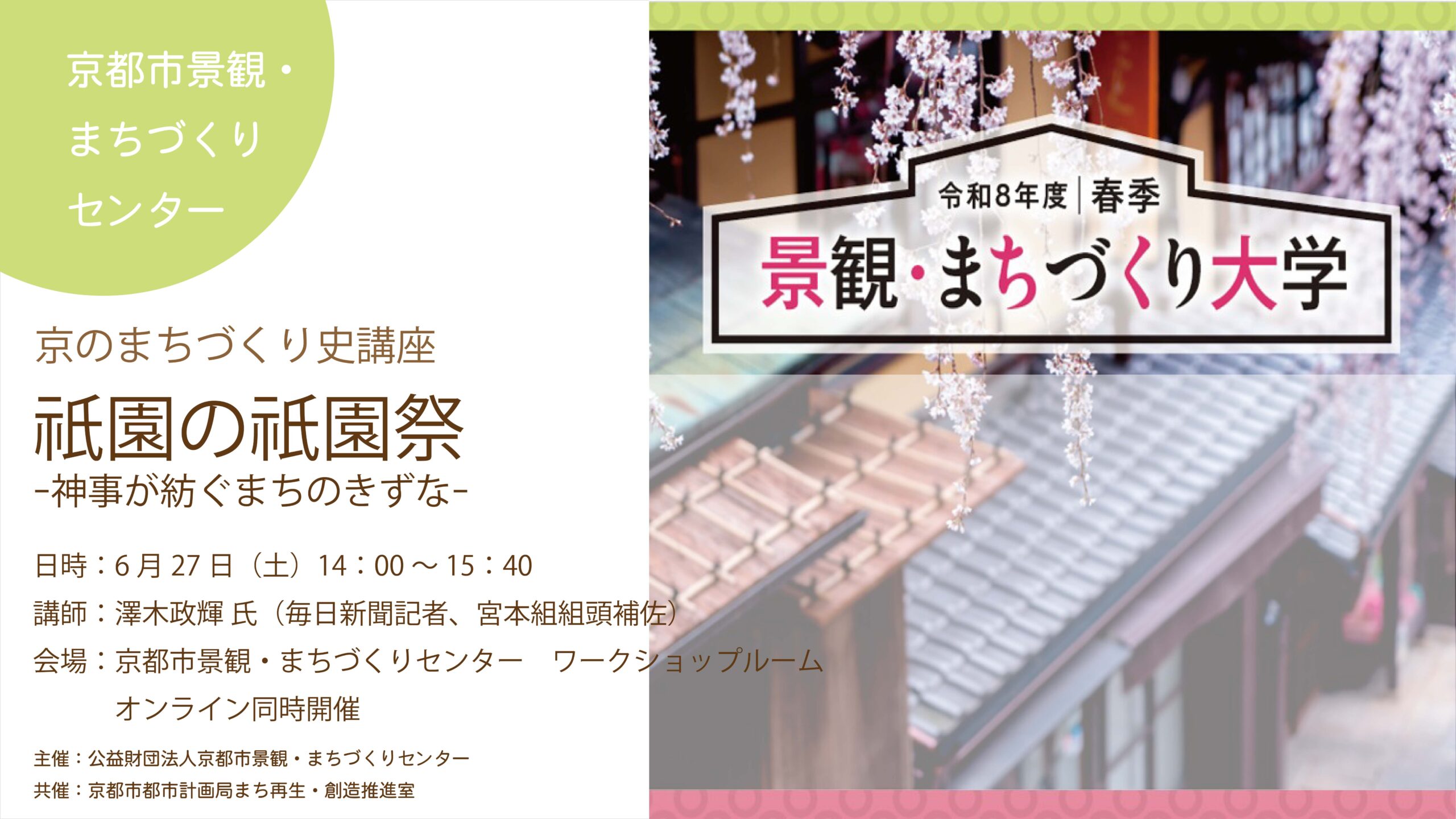 京都市景観・まちづくりセンター 2026 年 6 月 18 日 (木) オンライン 2026 年 6 月 18 日 (木) |