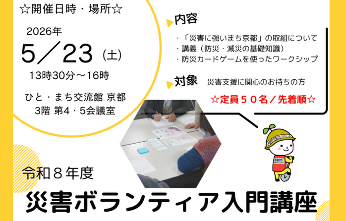 | 開催場所・日 | 京都市市民活動総合センター内 ミーティングルーム 2026 年 5 月 9 日 (土)【4 月 4 日 (土) から開催日変更】 |