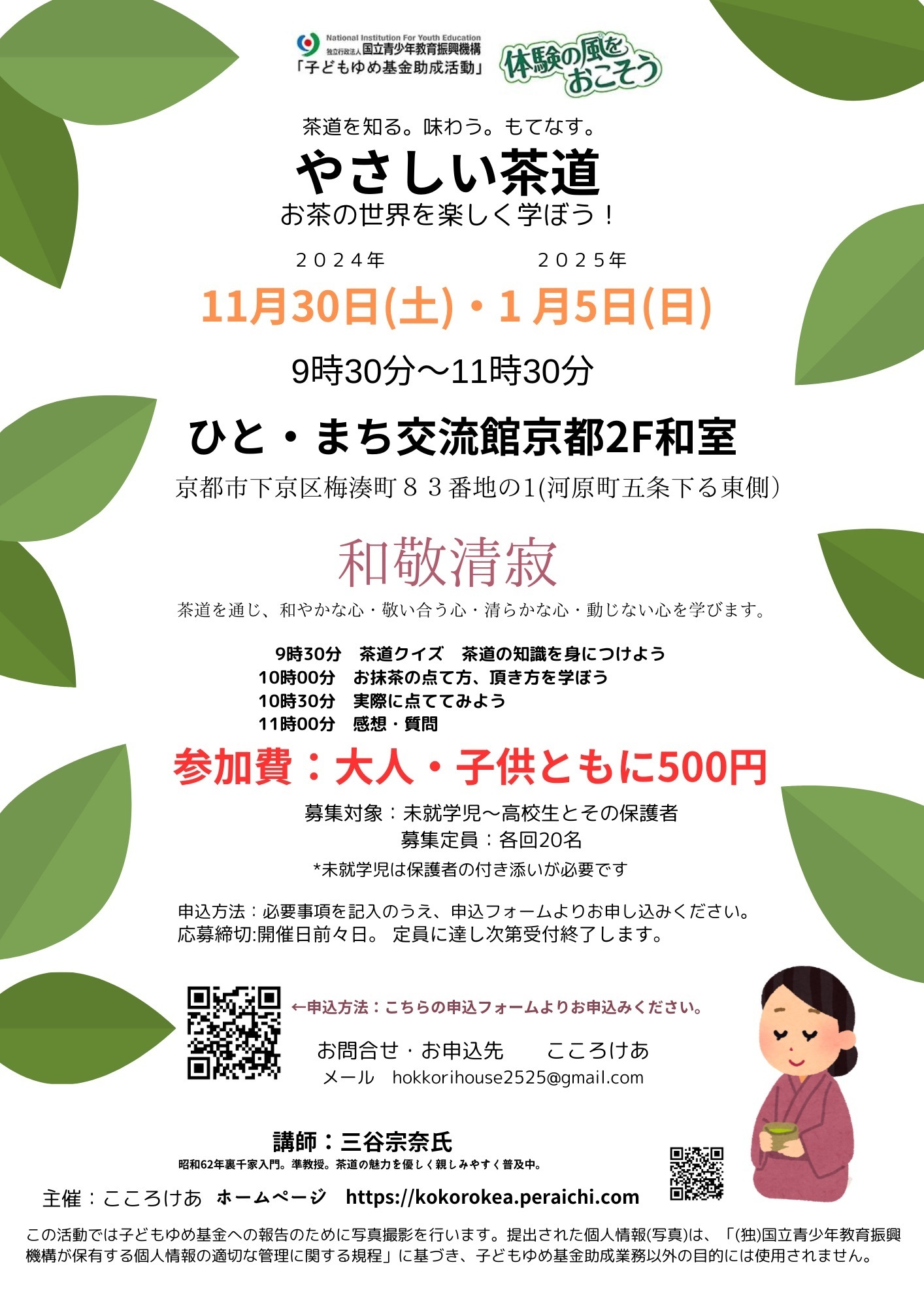 | 対象 | 小学校低学年対象 社会人対象 一般 シニア対象 小学校中学年対象 小学校高学年対象 子育て中の方対象 幼児対象 中学生対象 親子対象 高校生対象 大学生・専門学校生対象 |