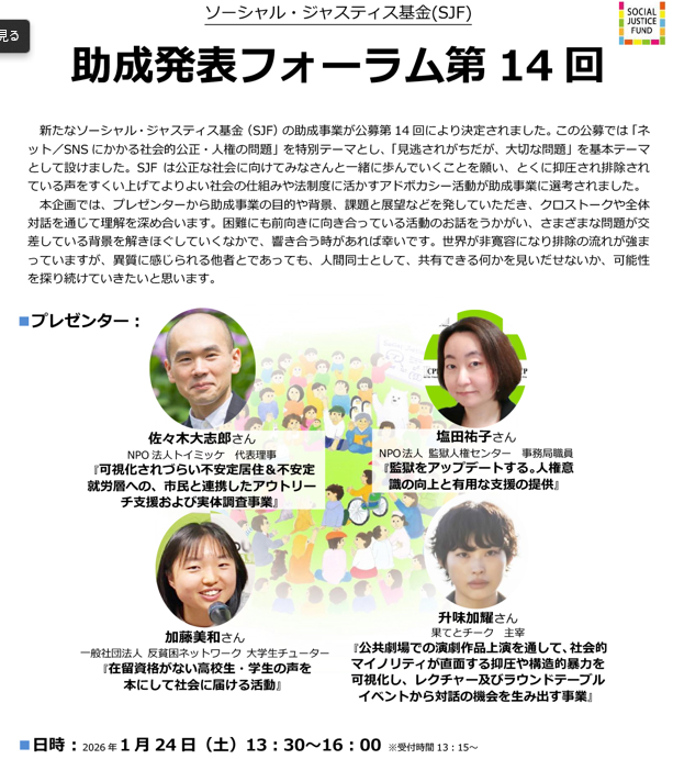 | 開催場所・日 | オンライン (zoom) 2026 年 1 月 24 日 (土) |
