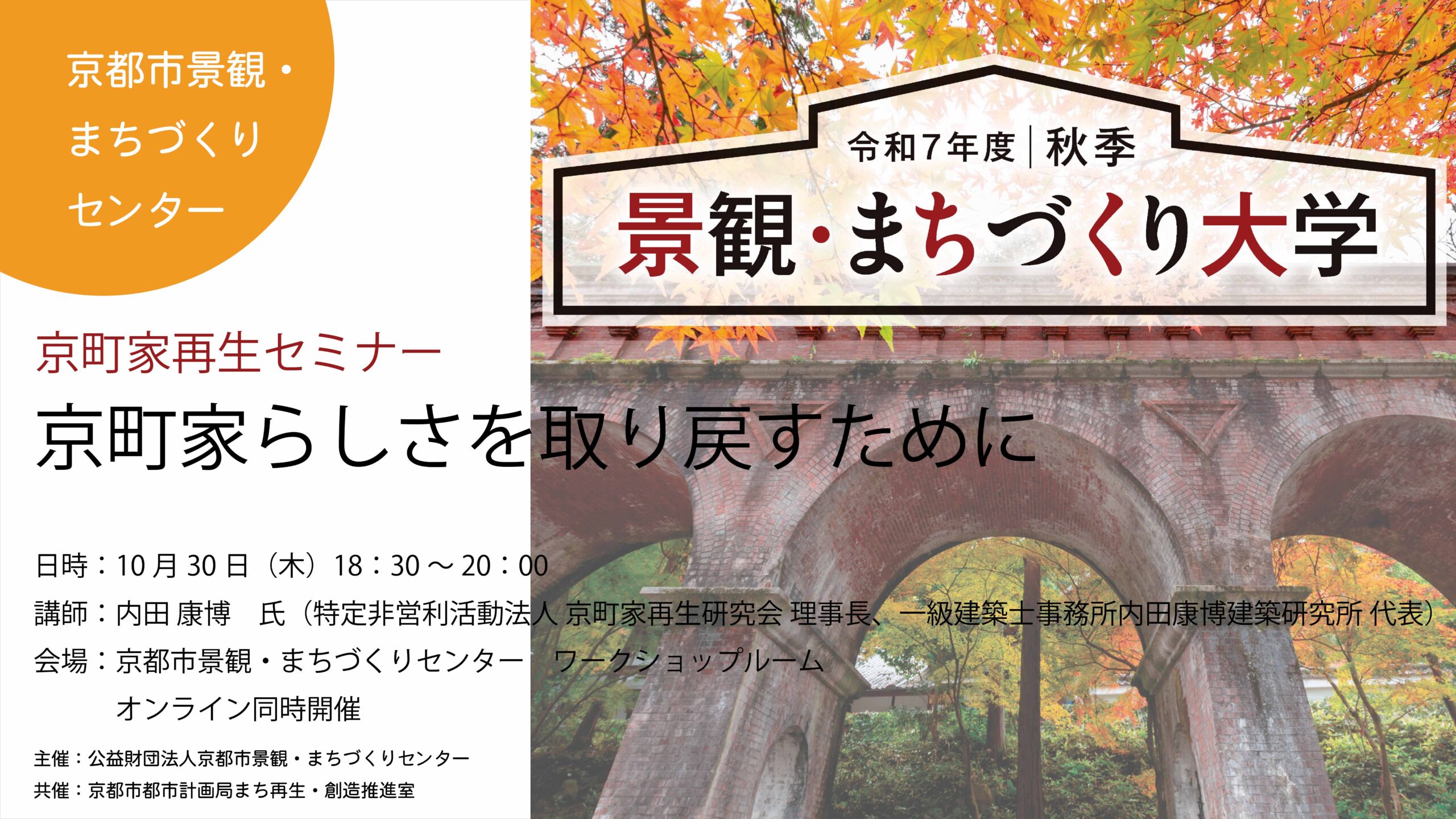 京都市景観・まちづくりセンター 2025 年 7 月 17 日 (木) オンライン 2025 年 7 月 17 日 (木) |