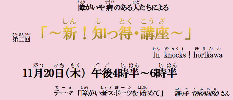 | 開催場所・日 | knocks! horikawa 2025 年 11 月 20 日 (木) |