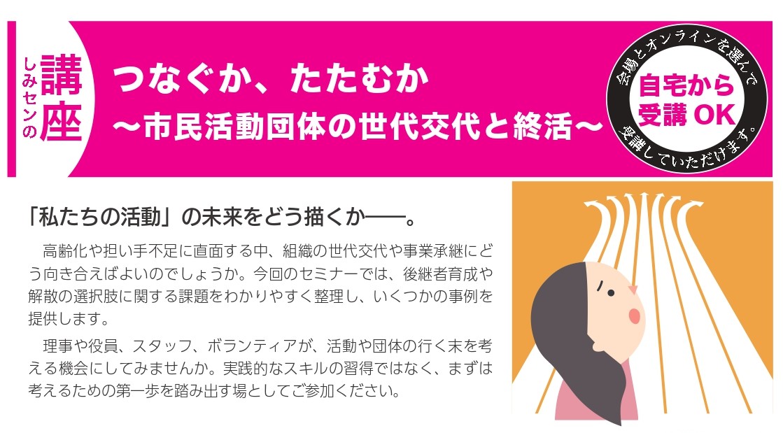 京都市市民活動総合センター 2025 年 12 月 11 日 (木) 【1 月開催】 2026 年 1 月 14 日 (水) 随時 ご要望に応じて個別に日程を設けることができます。 |