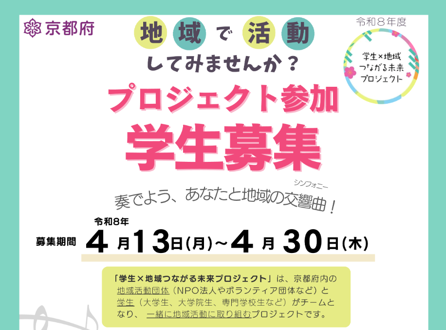 | 活動エリア | 丹後エリア 市内全域 中丹エリア 南丹エリア 京都市 乙訓エリア 山城北エリア 山城南エリア 京都府以外 |